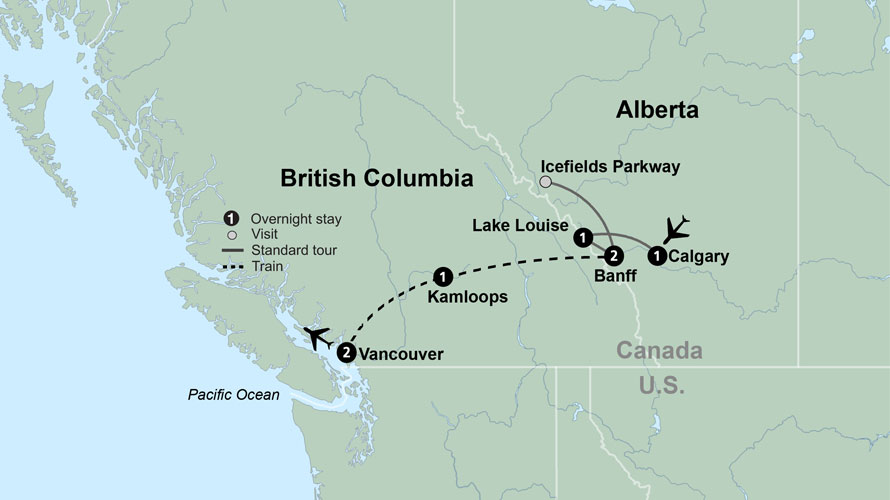 From scenic mountains and valleys to the stunning Lake Louise, explore the best of Western Canada via the famous Rocky Mountaineer train. Set off on a mesmerizing voyage from Calgary, Alberta to Vancouver, British Columbia.