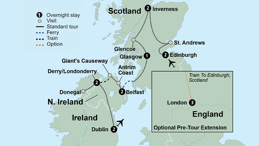 Bask in the warm Celtic culture and majestic scenery of two remarkable lands. From rugged natural beauty to vibrant and historical cities, the diverse charms of Scotland and Ireland await.