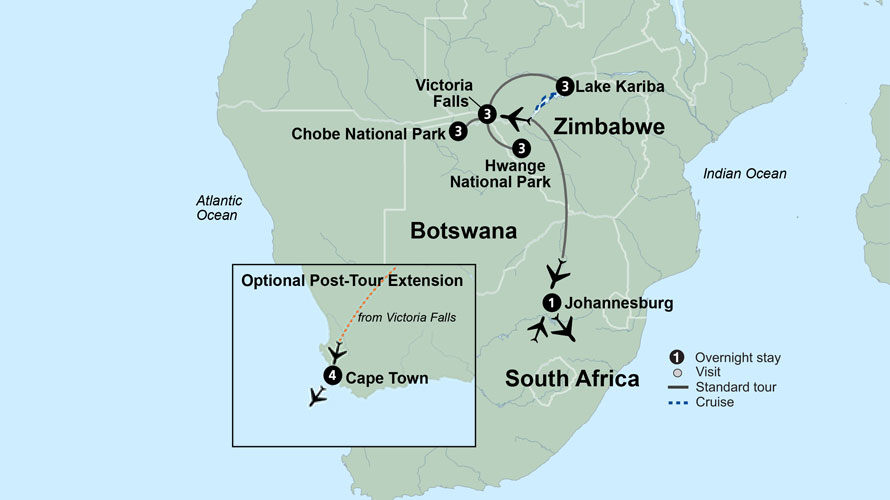 Journey through Southern Africa from its wild plains to its winding rivers on a true safari adventure by land and water. From the powerful Victoria Falls to the calm waters of Lake Kariba and the plains across southern Africa’s stunning parks - get ready for a true safari adventure.