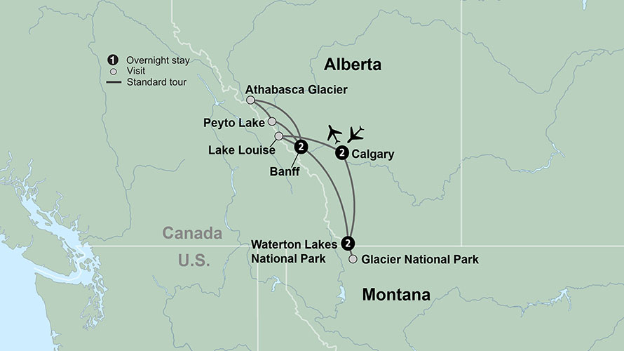 Ice fields, rushing waterfalls, glacial peaks, and towering summits are just a few of the wonders awaiting you. Get ready for an adventure that brings together the expanse of the prairies, the majesty of the Canadian Rockies, and Montana’s Glacier National Park.