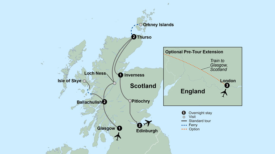 From its rugged sea-sprayed islands to its stately castles layered in history, Scotland awaits. Discover a land of rolling green Highlands, friendly sheepdogs, and historic castles.