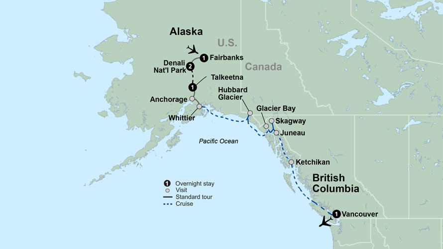Traverse the Pacific coast by land and sea aboard one of Holland America Cruise Lines’ lovely ships on a breathtaking journey that takes you from Alaska to Vancouver, British Columbia. This is Alaska as you always imagined.